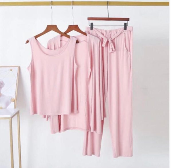 Baby Pink Long Sleeve Women Night Suit PJ Set 3 Pieces