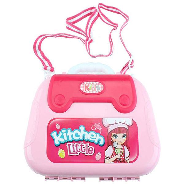 Playset for children aged 3+. Briefcase kitchen consists of several pcs of kitchen equipment packed in suitcases such as: pot, teflon, plate, glass, knife, spoon, fork, sauce bottle, vegetables etc complete with sticker stick. With this little toy, kid can learn to recognize the name of the equipment used in the kitchen and its functions.